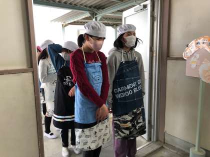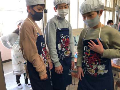 今日はいよいよ自分で作ったエプロンを給食の時間に使います。