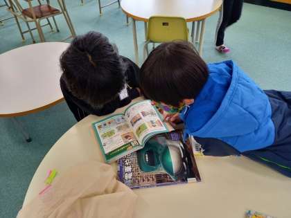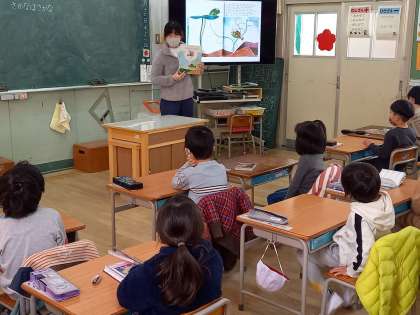 教室で先生が読み聞かせをしたり、図書室でたくさんの本から自分の好きな本をさがしたり…。