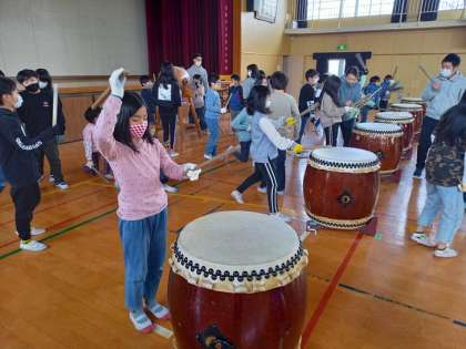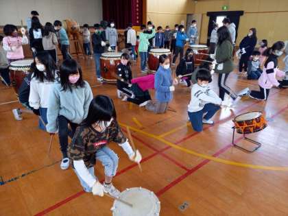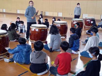 初めてたたく大きな太鼓を前に、子どもたちのワクワク、ドキドキ感が伝わってくるほど、子どもたちの瞳が輝いていました。