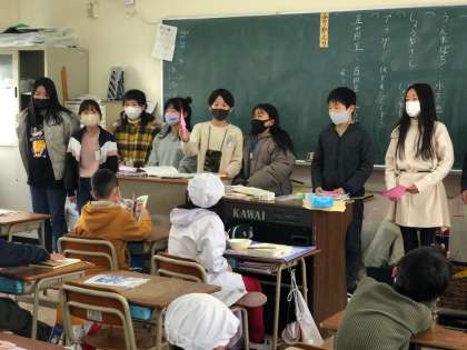 給食を食べ終わり2年生が食器を片付けていると、そこへ突然6年生が!!