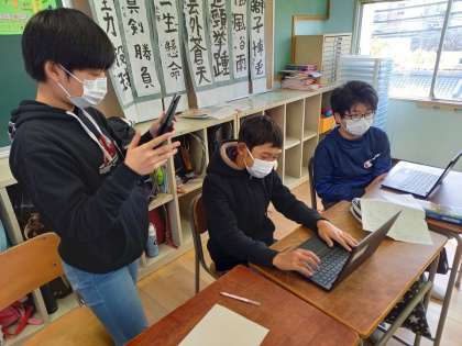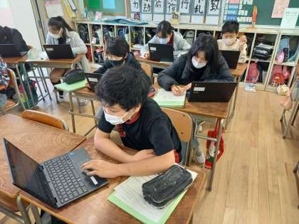 国の施策により、年度末までに各学校現場に1人1台ずつ学習者用端末が配備されることになっていますが、西淡路小学校のほうにも機器が届き活用が始まっています。
