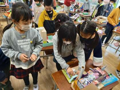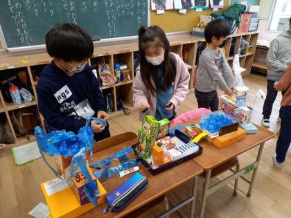 2年生が図画工作の時間に制作してきた「ともだちハウス」が完成しだしました。