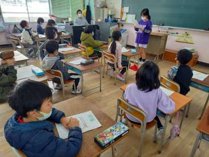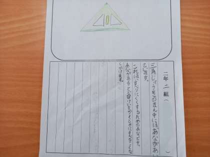 2年生の国語「あなのやくわり」の学習は、単元のまとめとして、身の回りにある穴のあいているものには、なぜ穴があいているのかを考えて文章にし、みんなの前で発表をしていきます。