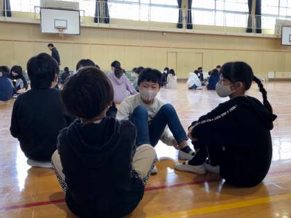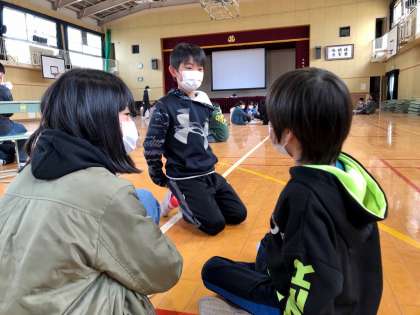 しっぽ取りゲームで盛り上がったあと、1年間活動を共にしたたて割り班に分かれて6年生から5年生へリーダーの引継ぎです。リーダーとして大変だったことや楽しかったこと、伝えたい気持ちを言葉に紡いでいました。5年生から「どうやってみんなをまとめるの?」といった質問にも「5年生を信頼して、一緒に班をまとめてもらうねん!今年ほんま助けられたわ!」と温かいムードのなか話は尽きませんでした。