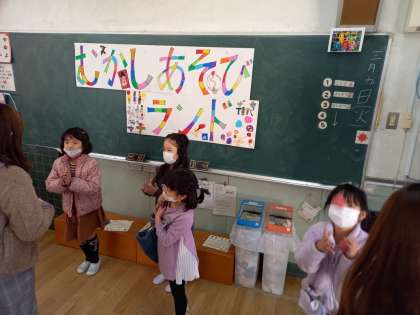 1年生が「あそび」の各ブースを担当し、少し照れくさそうにしながらも、お家の方々に「あそび」の説明をして、お店番をしっかりと務めてくれました!