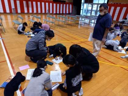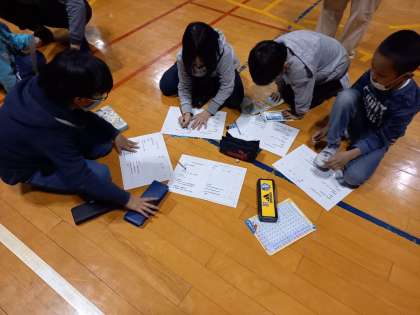 各班に分かれて、お料理を一品つくるために必要な食材のリストを作り、お買い物をするときにお店の人に何と言えばよいか…、ただし…、お店では英語しか通じません!