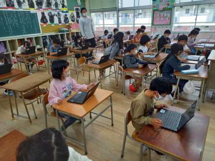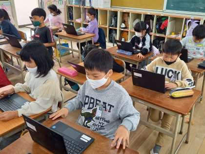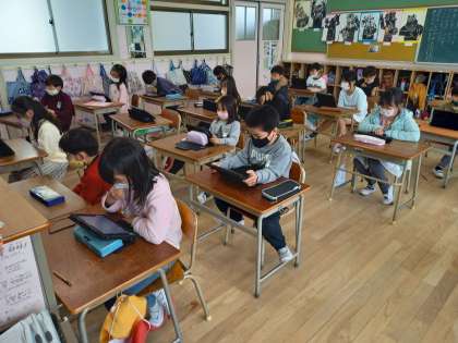 タブレットパソコンを使った授業を、2年生3クラスで行っていました。