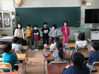 2年生では新しいクラスの友だちに自分の事を自己紹介する時間がありました。自分の名前、好きな食べ物、頑張りたいことなど、自分の言葉でしっかり伝えることができました。周りの友だちもしっかり聞くことができて、さすがお兄さんお姉さんになってきたなと感じます。