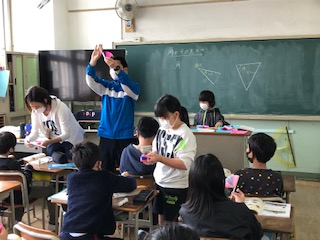 4年生ではさっそく算数科の学習が始まりました。今日は折り紙で扇をつくり、角の大きさを扇の開き方で比べる学習です。学習が一段と難しくなってくる4年生。最後まであきらめずに楽しんで学んでほしいです。