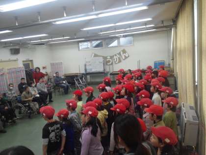 2年生は校区内にある障がい者センター『翔館』の方たちとの交流会を行いました。『翔館』の方たちは、地域の行事にもよく参加されていて、盆踊りやこの前の80km駅伝などにも参加してくれていました。