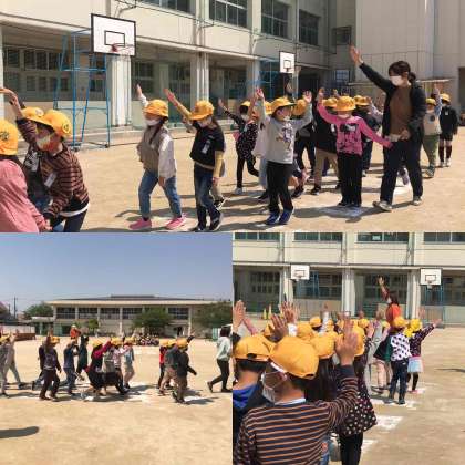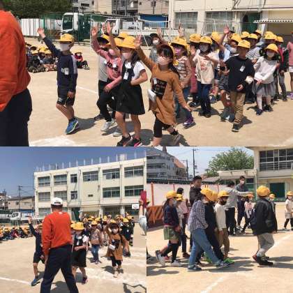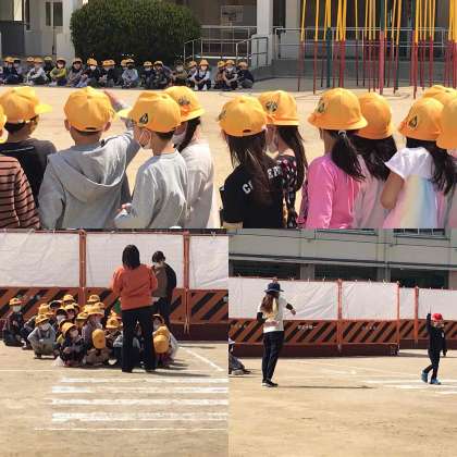 今日は、1年から3年まで「交通安全教室」を行いました。運動場で道路や駅のホームに見立てて、一人ひとり実際に体験しました。横断歩道の渡り方、駐車してある車に注意して歩行すること、電車や乗り物の基本的な乗り降りの仕方を確認しながら学習しました。校外学習にも必要なことです。