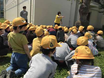 淡路中学校の学習園、畑に行かせてもらい、春の草花や虫や生きものの観察に行きました。たくさんの草花が青々と茂り、テントウムシや小さな生きものもみつけることができました。