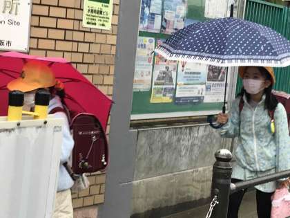 緊急事態宣言後、三日目の登校となりました。特に自主学習で朝の登校をしてきた時間帯は、雨が降って傘をさして登校していますが、元気にあいさつをすることができています。
