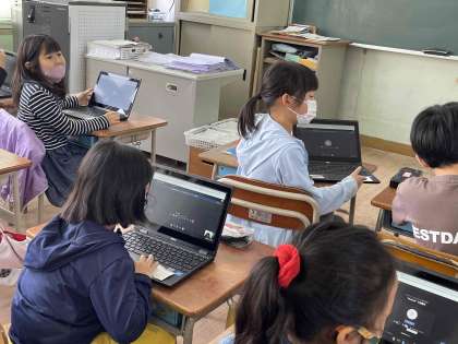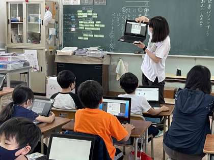 2年生においても、タブレットPCの持ち帰り学習の準備として、基本的な使い方の練習をしています。学校ではみんなで一斉に学習をしますが、家庭に持ち帰ったときの操作を練習しています。