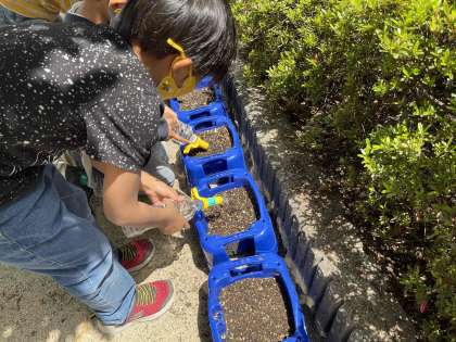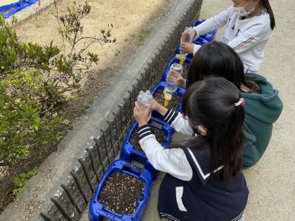 アサガオの種を植えました(1年生活科)(5月10日)