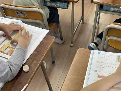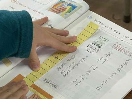 ハガキのたての長さ、よこの長さをはかりとる学習から、ながさをはかるための約束ごとを学習しています。ものさしとはかるものの端をそろえることが大切です。