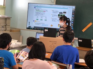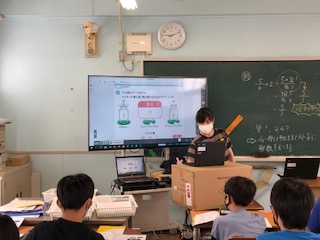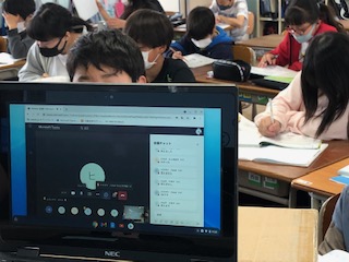 6年生も1時間目からリモート学習を行いました。教室で対面授業を受ける子どもと、その授業に家からリモートで参加する子どもがいます。教室の児童が手を挙げればカメラを教室の子どもたちの方に向け、家庭で参加している児童が指名されれば、音声をつないで発言してもらいます。担任は大忙しですが、受けている子どもたちは集中して学習に取り組んでいました。通常の授業が始まっても、様々な場面で活用できそうです。