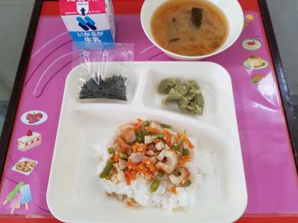 牛乳 かやくご飯 みそ汁 まっ茶ういろう