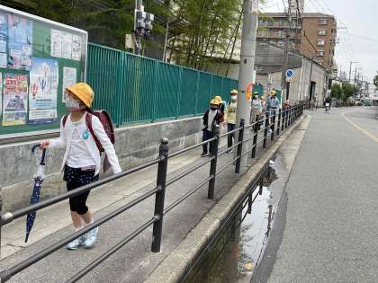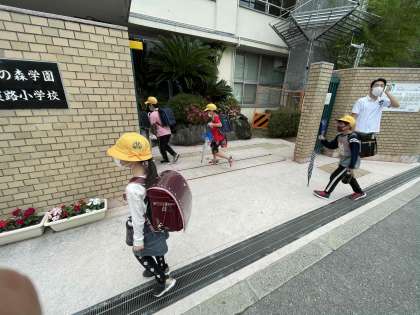 お知らせをしておりました通り、本日と明日は1時間目から4時間目までの授業となりますので、8時25分までの一斉登校です。朝いちばん、子どもたちのにぎやかな登校風景が戻ってきました。明日も4時間授業を経て、来週24日(月)より通常の授業となります。