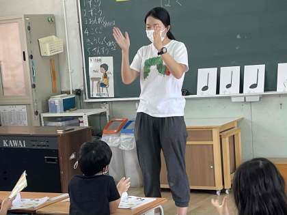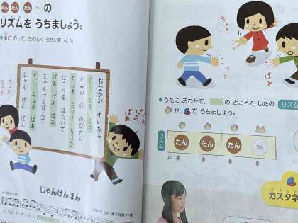 曲にあわせて、リズムうちの練習をしています。拍の流れに合わせて打つところと休むところを組合わせて練習をしています。