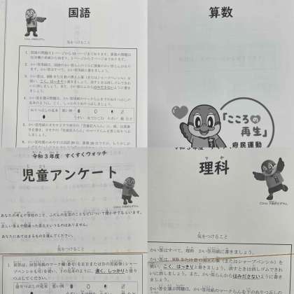 大阪市の子ども一人ひとりにこれからの社会を生きる学力を確実につける取組みとして今年度から初めて行われました。5年生は1時間目は国語・算数、2時間目は理科・児童アンケート、3時間目わくわく問題。6年生は、1時間目は、わくわく問題、4時間目は児童アンケートです。学校として、これからの指導に活かしていきたいと思います。