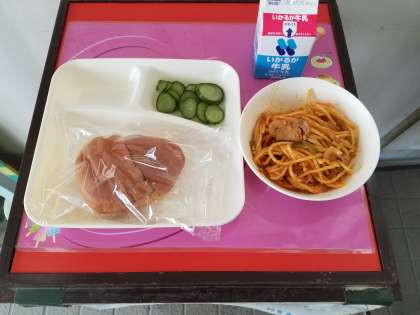 パン 牛乳 スパゲッティミートソース きゅうりのピクルス