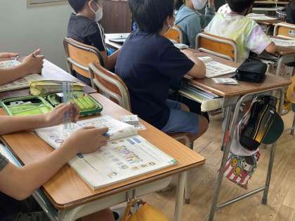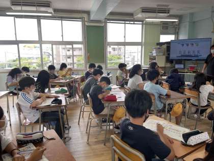 おたがいの誕生日を伝え合う学習です。名前(だれの)、何月、何日かを言い方の約束にしたがって練習しています。テキストにある例文を聴きとるのにはじめは苦労しますが、慣れてくると聴きとることができます。