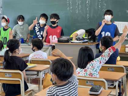全体の集会は密になることを防ぐため集まっていませんが、それぞれの活動教室で話し合い活動をしました。7月に予定している「須賀の森フェスティバル」についての話し合いです。