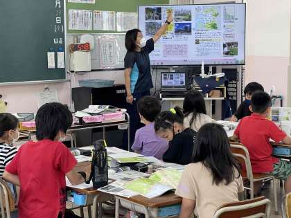 上町台地は、どのようなようすなのだろうかを調べる学習です。資料(地図)を読み取り、気がついたり見つけたりしたことをまとめています。資料を読み取ることもなれてきました。