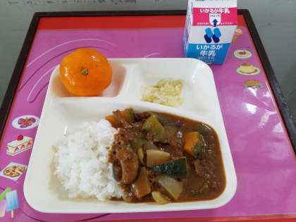 牛乳 夏野菜のカレーライス キャベツのサラダ みかん(冷)