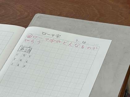 3年生では、外国語活動として英語にふれる機会もありますが、ローマ字の表記について学習しています。町の中で見ることもあります。英語との違いについても考えました。