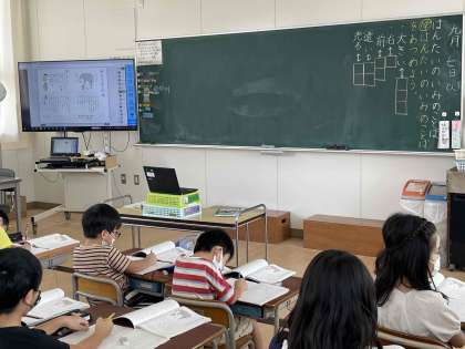 「ぞうは大きい⇔ねずみは小さい」の例以外にも、反対の意味をあらわすことばがあります。ほかの反対の意味を見つける学習をしています。