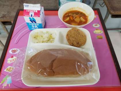 パン、牛乳、チキンレバーカツ、ケチャップ煮、ケチャップ煮