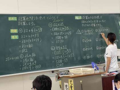 計算のきまり、( )を使って100などのまとまりをつくって計算をする学習をしています。