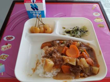 牛乳、ハヤシライス[米粉]、キャベツのひじきドレッシング