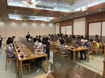 朝の集いでからだを動かしたので、朝ごはんもおいしいです。みんな元気です。