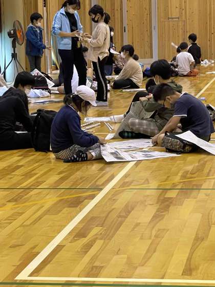 雨で外の活動ができないので、体育館をお借りしてグループ活動をしています。