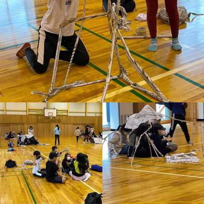 テント型もさまざまなものがグループの協力で、できました。1時間余りで完成するのはみんなの力の凄さです。
