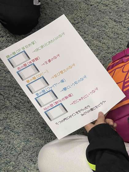 館内を利用して、謎を順番に解いていくラリーです。さぁ、どのグループが最初に戻ってくるかな?