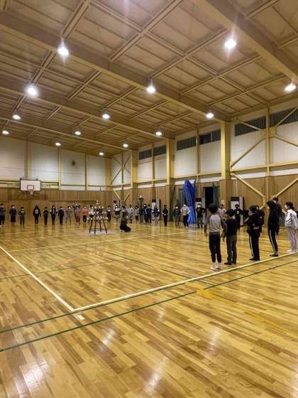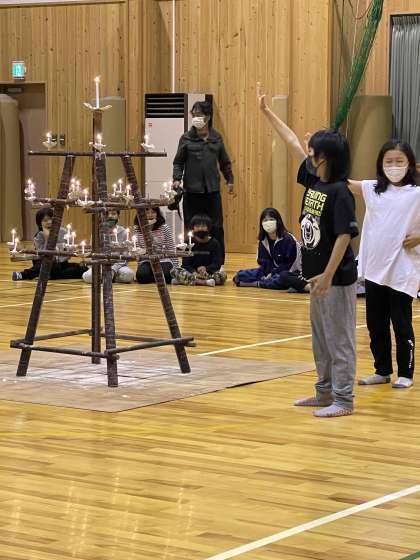 外が濡れているので、体育館でキャンドルファイヤー(キャンドルサービス)をしています。