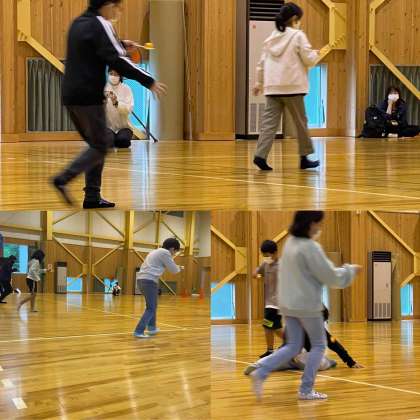 ピンポンおたまリレーや、手拍子リレーなどグループの協力がないと上手くいくないゲームです。ゼスチャーゲームなどもしました。