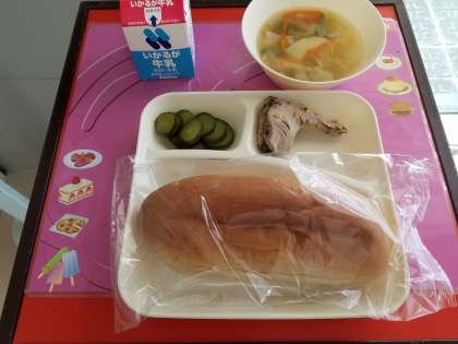 パン、牛乳、かつおのマリネ焼き(ノンエッグドレッシング)