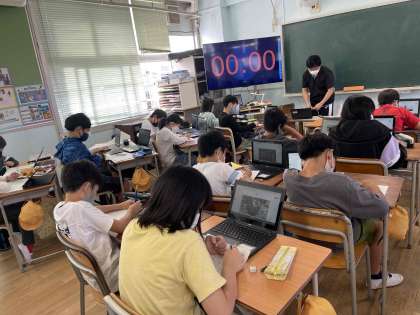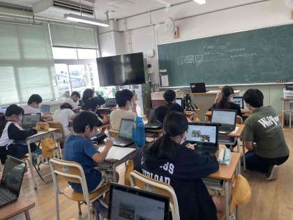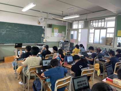 自然体験教室の振り返りをPCを使って、画像を取り入れプレゼンできるようにまとめの作成をおこなっています。