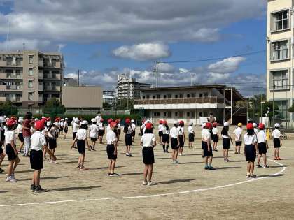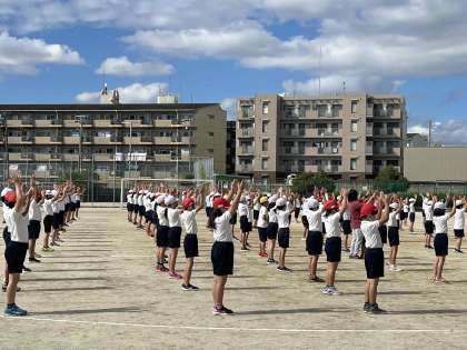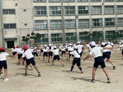 3時間目からは、3,4年生が淡路中学校で練習しています。広い運動場で力いっぱい体を動かしています。