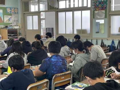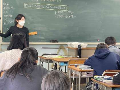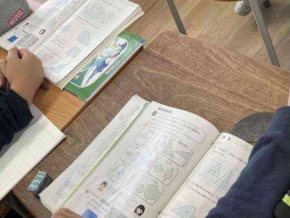 図形について調べる学習をしています。角の大きさや辺の長さの比に着目して、図形の性質を理解しています。