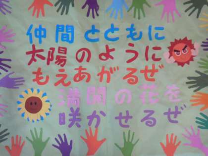 また、児童会の目標も『仲間とともに太陽のようにもえあがるぜ 満開の花を咲かせるぜ』となったと発表してくれました。