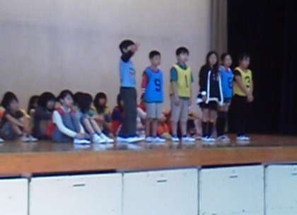 今日の集会で前期児童会のメンバーを紹介しました。