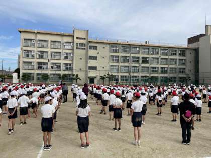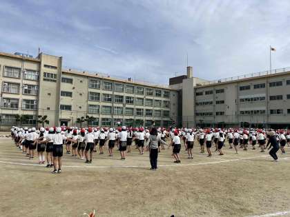 今日は、全体練習も含め淡路中学校に協力をいただき、運動会のリハーサルをしました。全校で淡路中学校の運動場の練習ははじめてです。日曜日の本番まであと少しです。