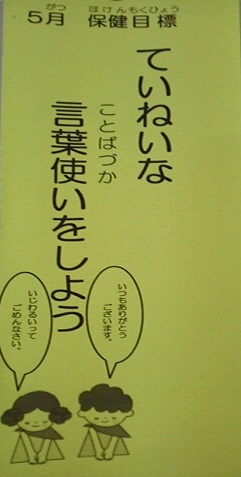 新しい学年が始まって1か月、慣れてきたり、月初めの休みがあったりして、4月の初めの初々しい、そしてやる気いっぱいの気持ちがうすれていないでしょうか。今一度、生活の基本「あいさつ」を見直し、友達や人との関係の基本となる「ことば」を大切にしていきましょう。子どももおとなも。
