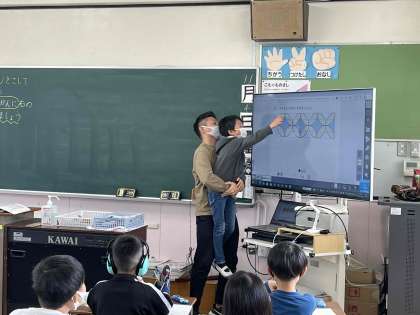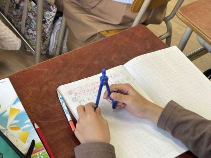 コンパスを使って、いろいろな図形の書き方を考えています。コンパスの便利なところと操作になれることを学習しています。